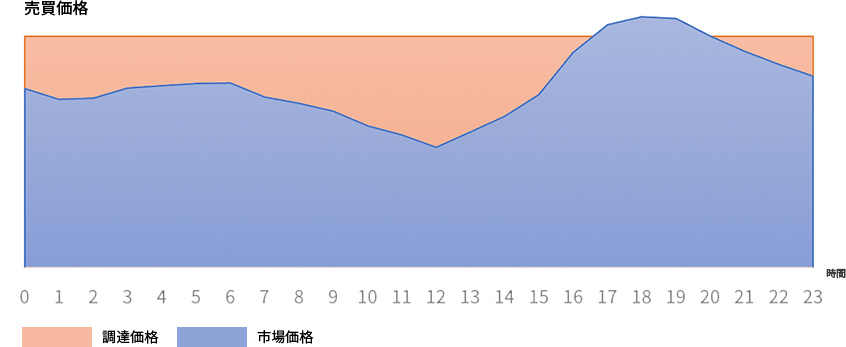 FIT制度(固定価格買取制度)のように電力会社が一定価格で一定期間買い取るのではなく、