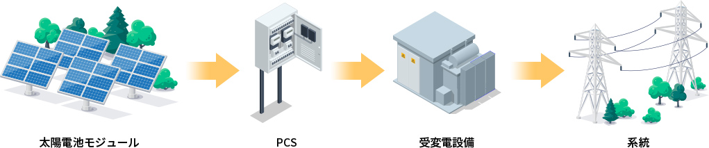 FIP制度では、蓄電池や蓄電池用パワーコンディショナを組み合わせることで、発電・充放電のタイミングを柔軟に制御できる構成となります。