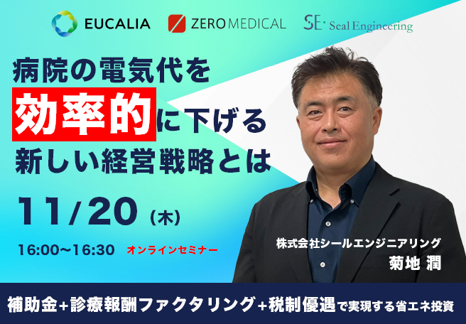 当社連結子会社のシールエンジニアリングは、ユカリアグループのゼロメディカル社と共同で、11月20日(木)、病院経営に関する新しいコスト削減策をご紹介するオンラインセミナーを開催いたします。